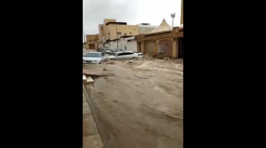 شاهد السيل يجرف شوارع الرياض وقادتها مشغولون في جرف الشعب اليمني !