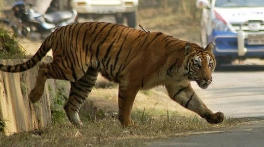 بالفيديو..نمر يطارد سياحاً في مشهد مرعب بالهند