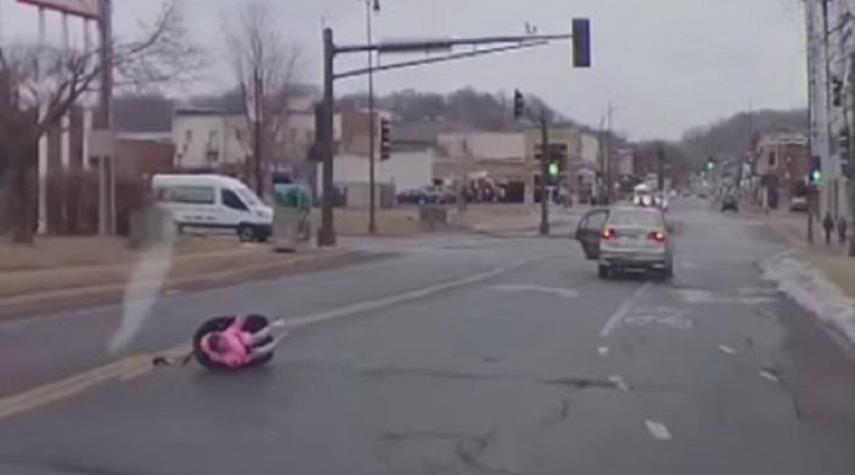 شاهد بالفيديو..سقوط فتاه "رضيعة" في منتصف "الطريق"!