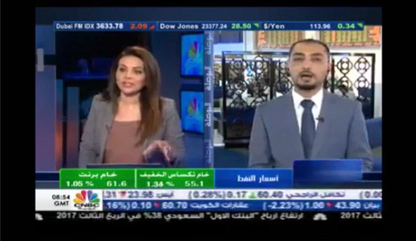 منوعات_الكوثر: تعرض مراسل احدى القنوات الفضائية لموقف طريف على الهواء مباشرة ، ما أدخل مقدمة البرنامج برفقته على الدخول في نوبة ضحك .