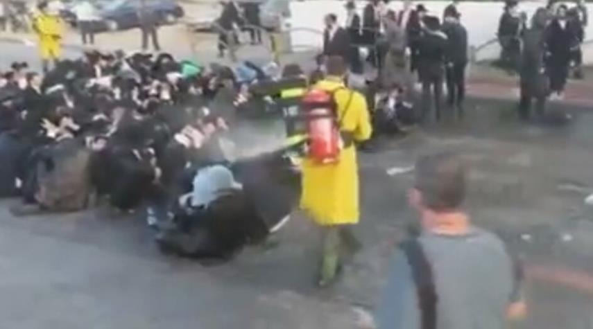 شاهد بالفيديو .. هكذا يقوم الصهاينة بتعقيم الحاخامات خوفا من كورونا