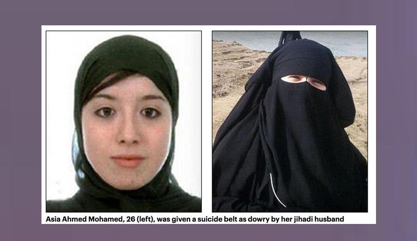 كشفت مصادر بالشرطة الأسبانية أن فتاة إسبانية تدعى آسيا 26 عاما، هربت إلى سوريا، وبعدها تركت منزلها في سبتة عام 2014؛ من أجل الزواج من الإرهابي التابع لتنظيم داعش "محمد حمدوش" الشهير بـ "مقطوع الرأس" والانضمام إلى "داعش"، فقدم لها "حزام انتحاري" كمهر للزواج”.