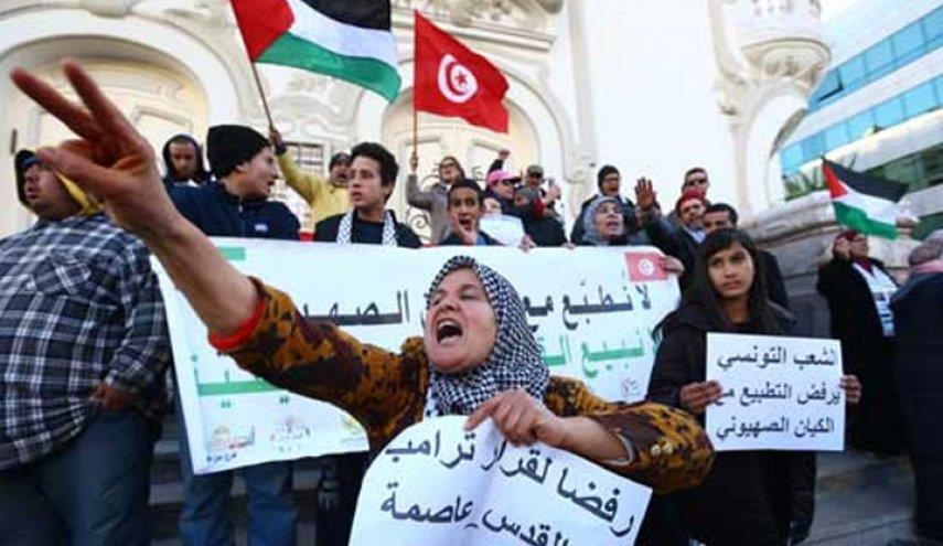 تونس _ الكوثر: شهدت العاصمة التونسية، وقفة احتجاجية طالب عشرات المشاركين فيها، برلمان البلاد، بسن قانون يُجرّم التطبيع مع الكيان الإسرائيلي، في أسرع وقت ممكن.