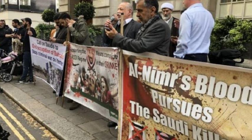 وقفة احتجاجية أمام السفارة السعودية بلندن تدين المجرزة السعودية