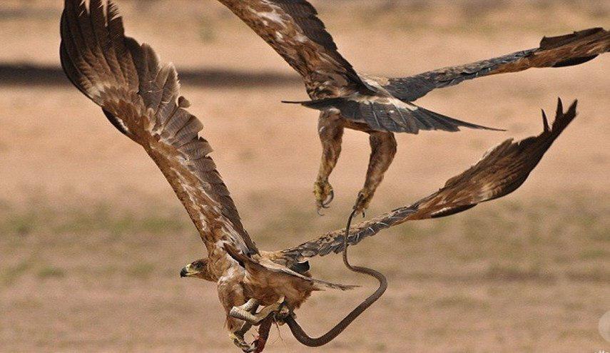 شاهد... فيديو معركة “مثيرة” بين ثعبانيْن ذكرين ضخميْن للظفر بالزواج من أنثى!