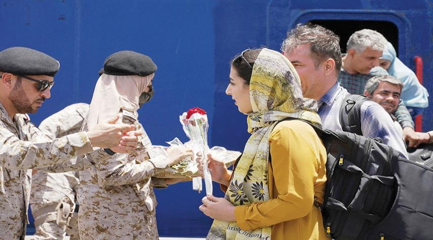 شاهد..السعودية تجلي مواطنين ايرانيين من السودان وتودعهم بالورود