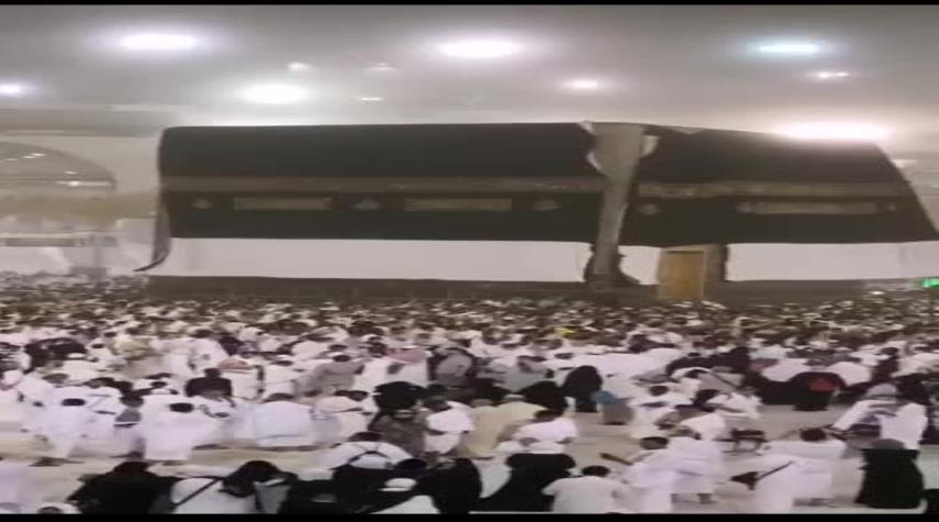 من المسجد الحرام-الكوثر: نشرت الصفحة الرسمية للحرمين الشريفين على تويتر مجموعة من الصور أثناء رفع كسوة الكعبة المشرفة استعدادا لبداية موسم الحج.