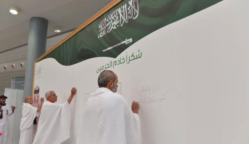 دشنت السلطات السعودية جدارية كبيرة، في مطار الملك عبدالعزيز الدولي بجدة، وطالبوا الحجاج التوقيع عليها، وكتابة كلمات شكر للملك السعودي سلمان بن عبد العزيز.