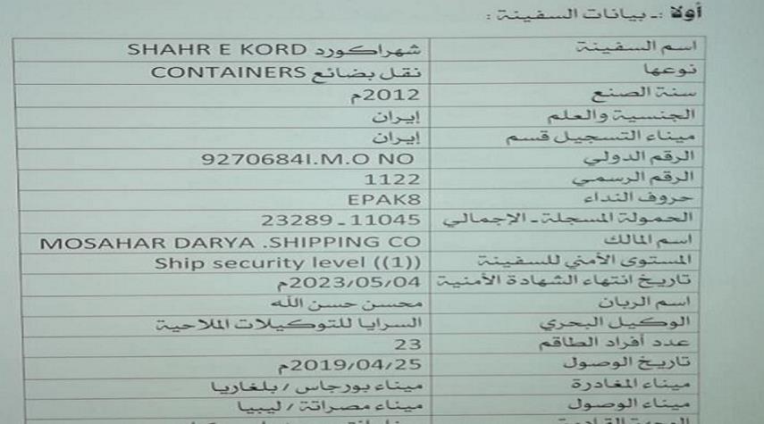ليبيا: السفينة الإيرانية المحتجزة لا تحوي أسلحة كما زعم الاعلام السعودي