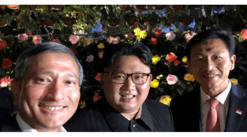 أسيا و الباسفيك _ الكوثر: التقط وزير الخارجية السنغافوري فيفيان بالاكريشنان صورتي سيلفي، ربما تكونان الأوليان للزعيم الكوري الشمالي كيم جونغ أون عقب وصوله إلى سنغافورة.