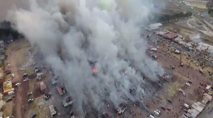 حوادث - الكوثر: قتل 24 شخصًا على الأقل وأصيب 49 آخرون بينهم رجال شرطة وإطفاء جراء انفجارات عدة دوّت، امس، في مستودعات للألعاب النارية في مدينة تولتبيك في شمال العاصمة المكسيكية، مكسيكو سيتي.