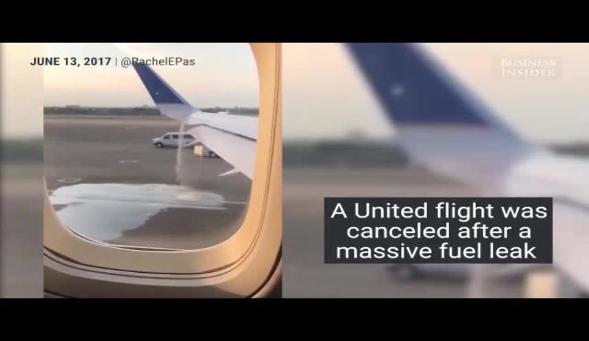 أظهر مقطع فيديو انتشر عبر مواقع التواصل الاجتماعي، للحظة تسرب الوقود بغزارة من جناح طائرة ركاب تابعة لشركة "يونايتد إيرلاينز" قبيل إقلاعها.