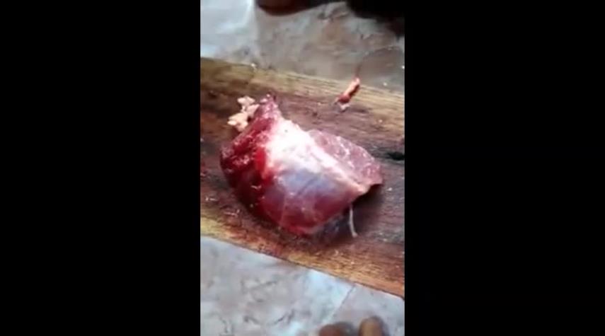 شاهد: أغرب من الخيال.. قطعة من اللحم تتحرك في سوق عام !!
