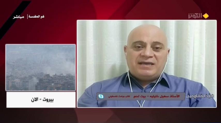 خلال مشاركته في برنامج "سيد المقاومين"، قال الباحث والكاتب الفلسطيني " الاستاذ سهيل خليلة" ان "السيد حسن نصرالله" كان يعتبر القضية الفلسطينية قضيته الاساسية، ولم يتخلى عنها قط.