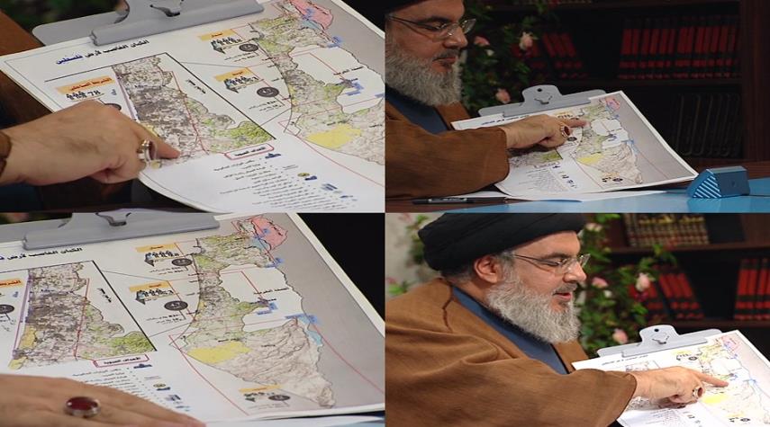السيد نصرالله يستعرض الاهداف الحيوية في الكيان الاسرائيلي التي تقع تحت مرمى صواريخ المقاومة +صور