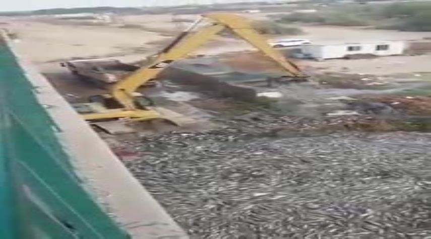 العراق - الكوثر: انتشر مقطع فيديو جديد على شبكات التواصل الاجتماعي لجرافة كبيرة تقوم بانتشال الأسماك النافقة من قلب البحيرة.