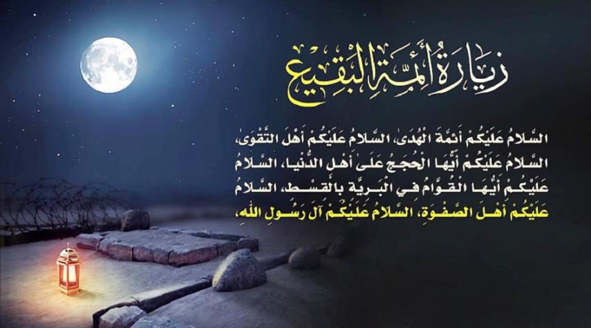 اسلاميات - الكوثر: زيارة أئمة البقيع؛ الامام الحسن المجتبى، الامام زين العابدين، الامام محمد الباقر والامام جعفر الصادق عليهم السلام، في يوم الثلاثاء.