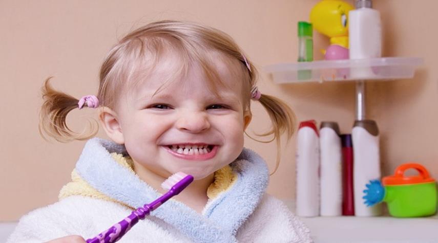 يجب تنظيف الأسنان بالفرشاة والمعجون لدى الأطفال منذ أن تبدأ في الظهور ولكن يجب إستخدام قماشة مبللة في البداية لتنظيف أسنان الطفل.