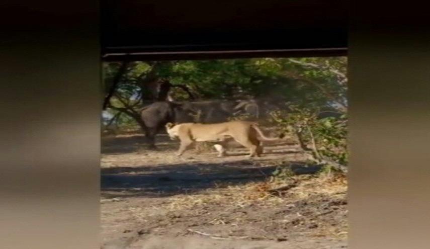 بالفيديو... هكذا هرب جاموس من براثن أسود جائعة