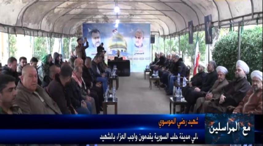 مع المراسلين.. أهالي مدينة حلب السورية يقدمون واجب العزاء بالشهيد السيد رضي الموسوي