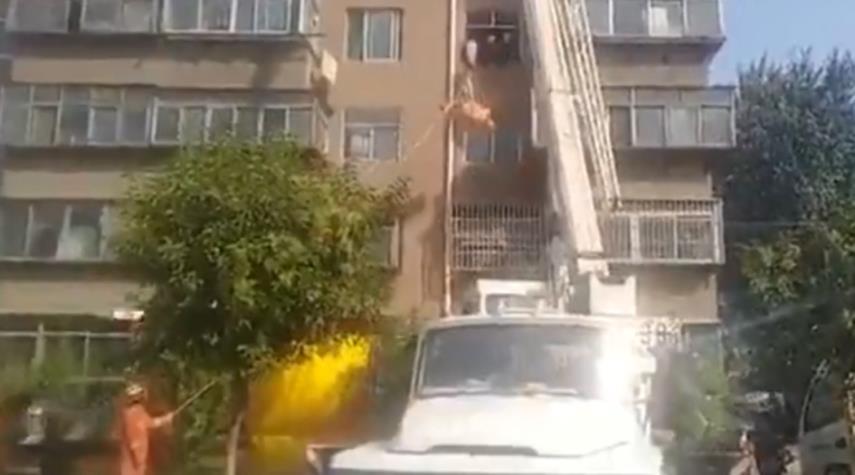 منوعات-الكوثر: انتشر مقطع فيديو يظهر حادثة إنزال رجل بدين يزن 225 كغم برافعة بناء من شقته في الصين.