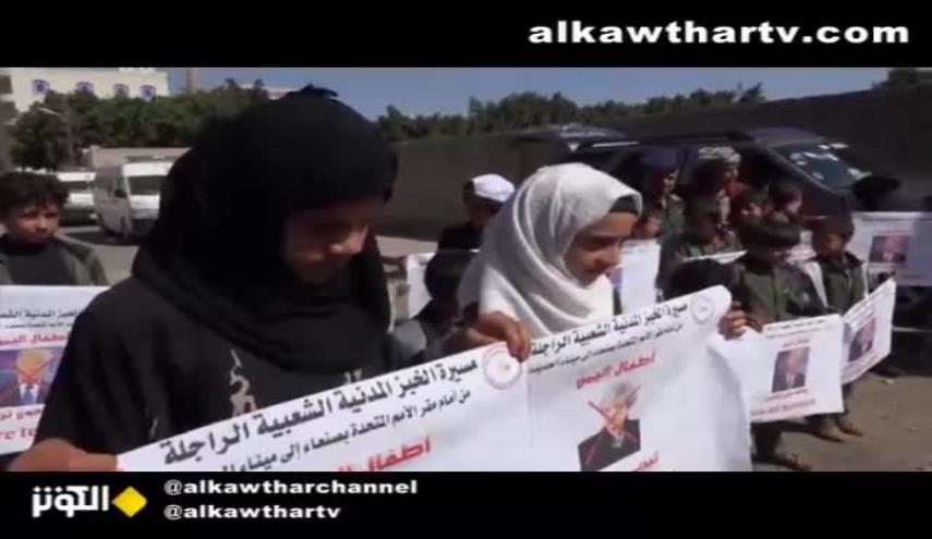 بالفيديو...اطفال اليمن يتظاهرون دفاعا عن ميناء الحديدة