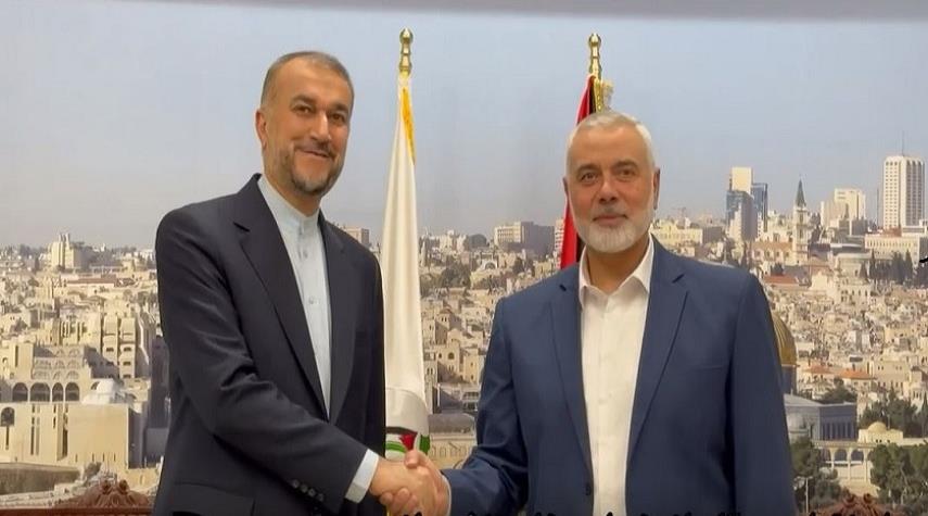 شاهد بالفيديو.. امير عبداللهيان يلتقي هنية في الدوحة