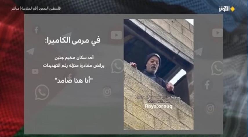 في فقرة "في مرمى الكاميرا" ضمن برنامج فلسطين الصمود تحدث احد سكان مخيم جنين انه يرفض مغادرة منزله رغم التهديدات.