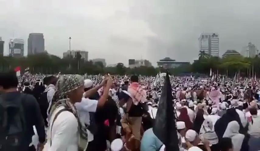 اندونيسيا-الكوثر: نظم مئات الآلاف من الإندونيسيين مسيرة من الميدان الرئيسي في العاصمة جاكرتا إلى ميدان آخر في المدينة اليوم الأحد احتجاجا على قرار الرئيس الأمريكي دونالد ترامب الاعتراف بالقدس المحتلة عاصمة للكيان الإسرائيلي.