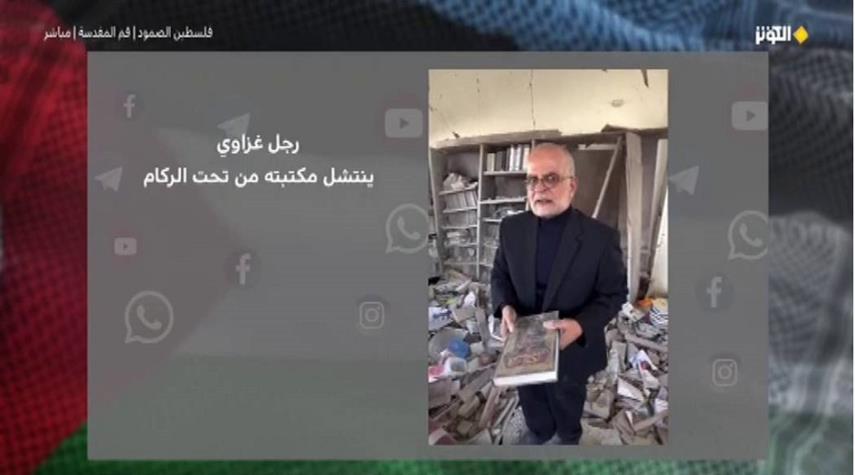 رجل غزاوي ينتشل مكتبته من تحت الركام | فلسطين الصمود