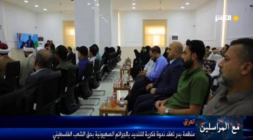 مع المراسلين... منظمة بدر تعقد ندوة فكرية للتنديد بالجرائم الصهيونية بحق الشعب الفلسطيني