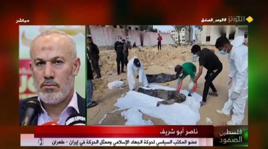 تحدث عضو المكتب السياسي لحركة الجهاد الاسلامي وممثل الحركة في ايران ناصر أبو شريف امس الخميس خلال مشاركته في برنامج فلسطين الصمود عن "المقابر الجماعية في غزة.. متى يحين وقت المساءلة؟"