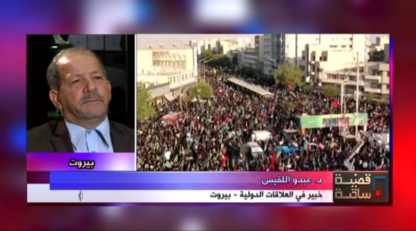 بحث برنامج قضية ساخنة ليلة امس موضوع " الشعب الإيراني.. موقف ثابت في دعم الثورة ونظامها الإسلامي" وقد تحدث الدكتور عبدو اللقيس الخبير في العلاقات الدولية عن انتصارات الثورة الاسلامية المباركة.