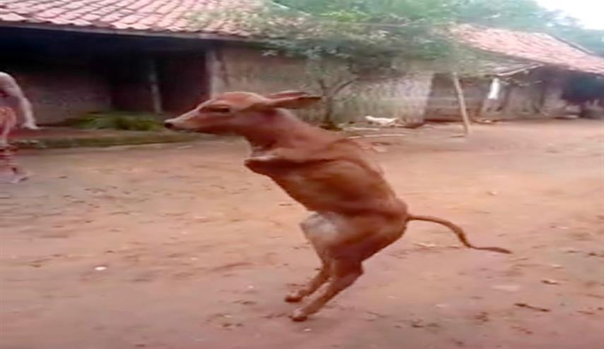 بالفيديو... بقرة تسير على ساقين مثل البشر