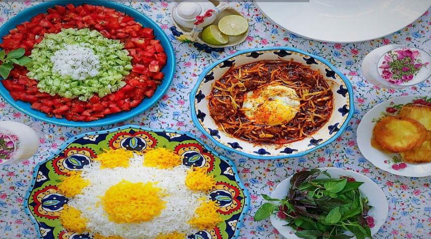 الطبخ الفارسي مع انه غريب لكنه بسيط كأشعار عمر الخيام، فالاطعمة الايرانية صحية رغم كونها غنية بالالوان وتشبة الرسوم المنمنة الفارسية.