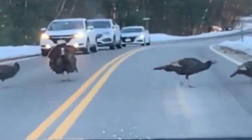 منوعات _ الكوثر: ديك رومي يوقف السير مؤمناً عبور دجاجاته