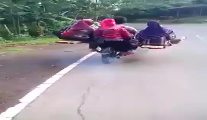 شاهد راكب دراجة نارية يخاطر بحياته لالتقاط سيلفي