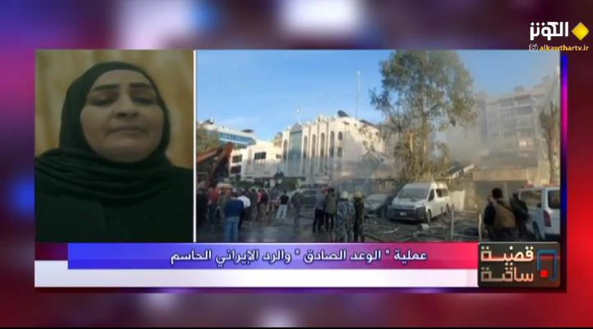قالت الباحثة السياسية اللبنانية، الدكتور سهام عزوز، ان رد الجمهورية الاسلامية الايرانية على استهداف قنصليتها في دمشق كان رد شرعي ومشروع، وهذا ما تنص عليه الكثير من الاتفاقيات الدولية.