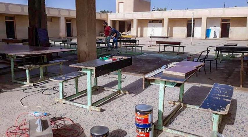 شاهد بالصور...العتبة العلوية ترعى حملة لصيانة مستلزمات المدارس في البصرة
