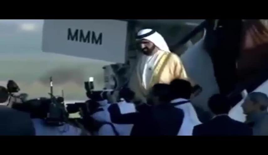 بالفيديو .. لحظة سقوط حاكم دبي من سلم الطائرة !