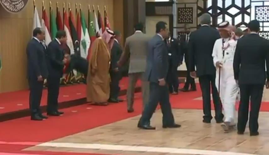 تعثر الرئيس اللبناني ميشال عون وسقط على الأرض عندما كان الزعماء والقادة العرب يستعدون لالتقاط صورة جماعية قبيل افتتاح جلسة الجامعة العربية في دورتها الـ28.