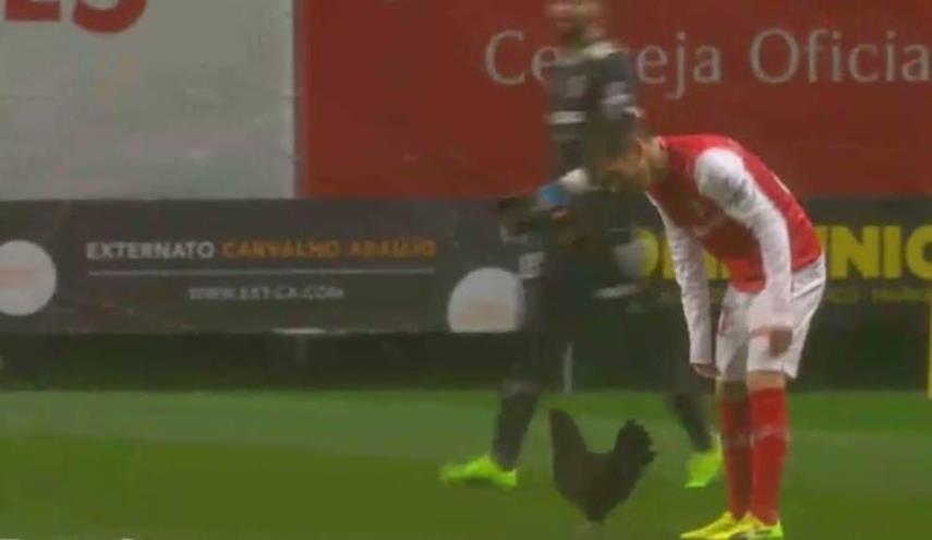 أكدت تقارير صحافية، أن دجاجة تسببت بإيقاف مباراة فريقي سبورتينغ براغا وضيفه إستوريل، ضمن الدوري البرتغالي، مبينة أن الدجاجة تسللت إلى الملعب في لقطة طريفة.