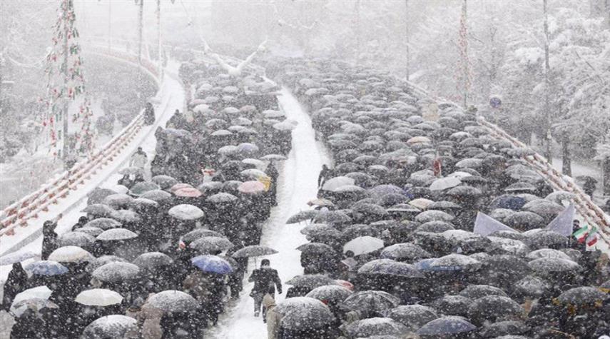 الإيرانيون يتحدون الثلوج والبرد القارس.. لإحياء ذكرى إنتصار الثورة الإسلامية