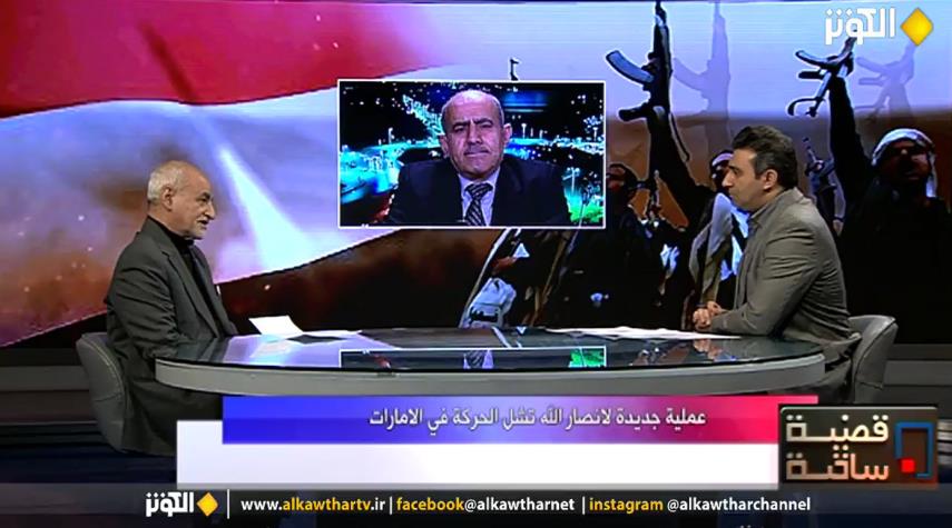 خاص الكوثر: في هذه الحلقة من برنامج قضية ساخنة، تحدثنا عن عملیة جديدة لانصار الله في الامارات ،مع العميد هيثم حسون خبير عسكري واستراتيجي من سوريا و مصدق مصدق بور الكاتب والمحلل السياسي من إيران.
