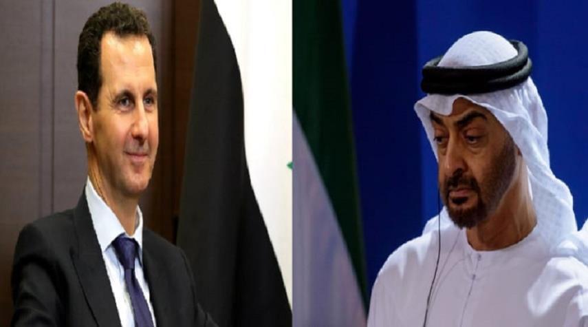 تبادل الرئيس السوري بشار الأسد والشيخ محمد بن زايد آل نهيان رئيس دولة الإمارات العربية المتحدة التهاني ،امس الاربهاء ،خلال اتصال هاتفي. بمناسبة عيد الأضحى المبارك.