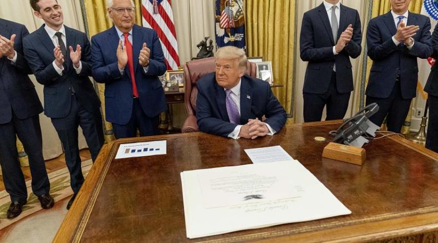 الامارات_الكوثر: أعلن الرئيس الأمريكي دونالد ترمب في تغريدة له عن اتفاق خياني بين رئيس وزراء كيان الاحتلال الإسرائيلي وولي عهد أبو ظبي على تطبيع كامل للعلاقات يشكل بحد ذاته خنجرا اماراتيا على ظهر القضية الفلسطينة والعالم العربي بشكل عام .