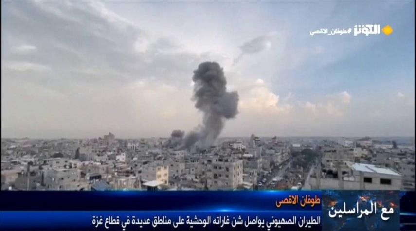 مع المراسلين.. الطيران الصهيوني يواصل شن غارات الوحشية على مناطق عديدة في قطاع غزة