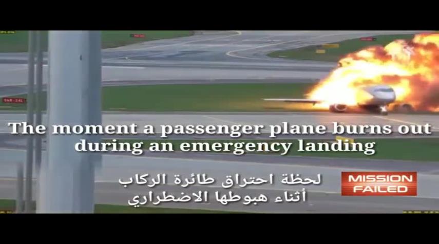 بالفيديو.. لحظة هبوط طائرة روسية احترقت بصاعقة!