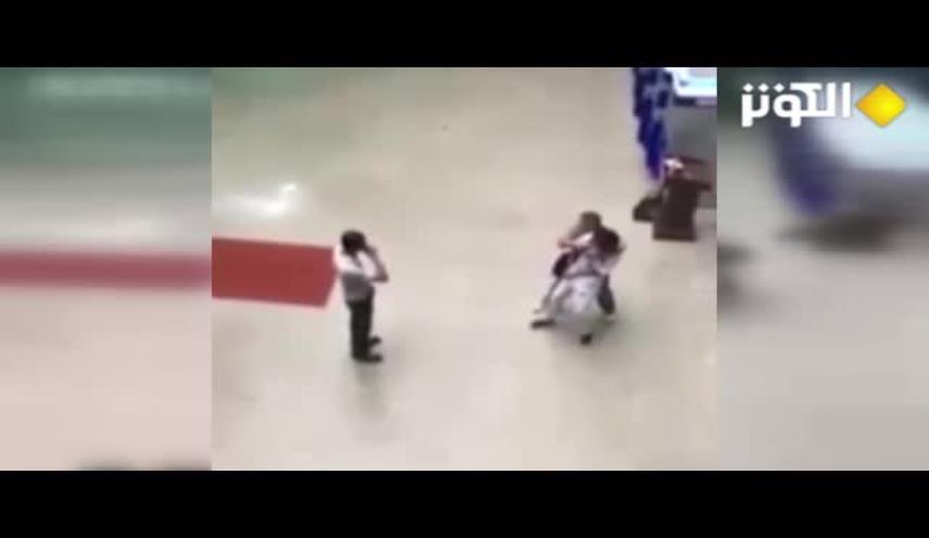 تناقل عدد من رواد مواقع التواصل الاجتماعي مقطعا مصورا يظهر لحظة إنقاذ فتاة من يد خاطفها تحت تهديد السكين.