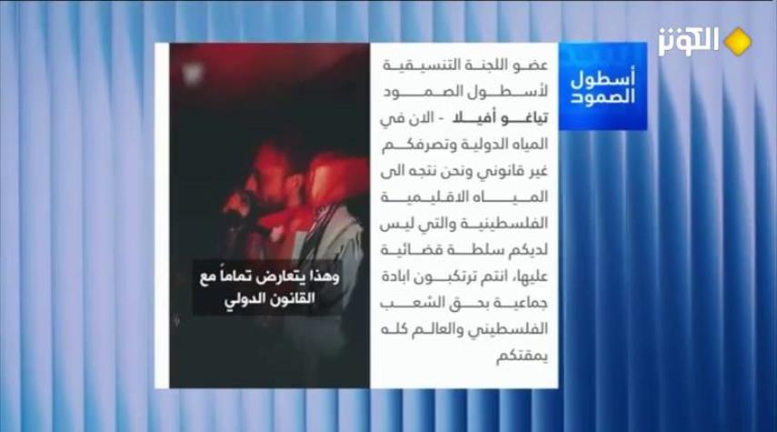 تياغو أفيلا عضو اللجنة التنسيقية ومن جنوب أفريقيا — موجِّهاً خطاباً قاطعاً إلى الجيش الإسرائيلي، موضحاً أن رسالة أساطيل التضامن إنسانية بالدرجة الأولى وتسعى لفتح ممر لإيصال المساعدات لسكان غزة المحاصرين، ومندِّداً بالاعتقالات والإجراءات التي وصفها بأنها غير قانونية ولا أخلاقية.